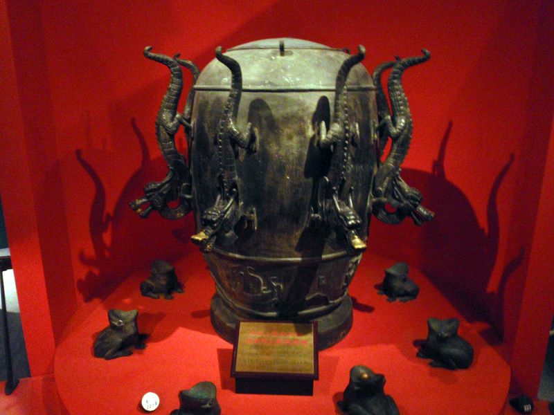 Cinsky seismograf - meri odkud kam jde zemetreseni tim, ze drak vyplivne kulicku zabe do pusy