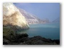 Kráter se sírou a jezerem v pozadí